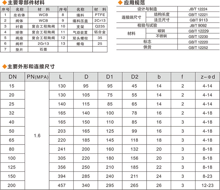 陶瓷氣動閥門采用高性能氧化鋯陶瓷材料,全部采用冷等靜壓成型,經(jīng)高溫燒結(jié),精密加工而成。零件致密性好,尺寸及形位精度高。硬度高(RHA87--92),機械強度大,具有極高的耐腐蝕,耐磨損,耐高溫能。球芯與閥座均采用氧化鋯工程陶瓷,摩擦系數(shù)小,密封可靠。 陶瓷氣動球閥性能特點: